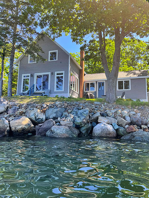 Wonderful views and incredible proximity to the shore is offered by this charming oceanfront cottage. Shore Enuf enjoys western views across the bay (toward Blue Hill Mountain), and gorgeous sunsets! It's a quiet location with panoramic ocean views and only 20 feet between the living room slider and the ocean at high tide! The waters in front of the cottage are terrific for kayaking, swimming and paddle boarding. There is a rocky beach area to one side of the cottage and another adjacent beach that guests can access below the high tide mark. Guests will enjoy accommodations that are very sweet and modern, with beautiful woodworking.