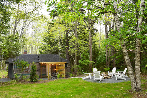 Just outside the back door of the master suite, a romantic outdoor sitting area under a sweet pergola is a great place to enjoy a morning cup of coffee or an evening glass of wine. The yard features a natural stone firepit and a grassy lawn large enough for kids and pets to play, or for a mean game of badminton or croquet! Natural landscaping and gravel paths make the rest of the yard feel like a transplanted corner of Acadia National Park.